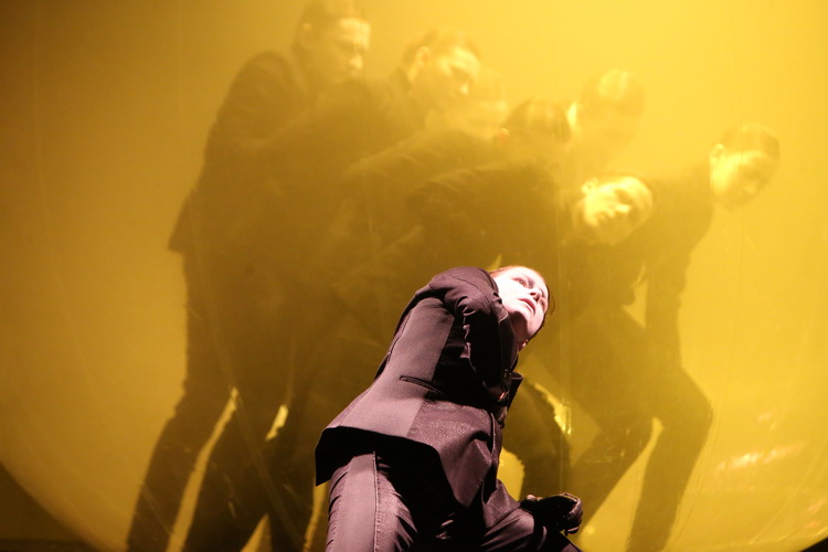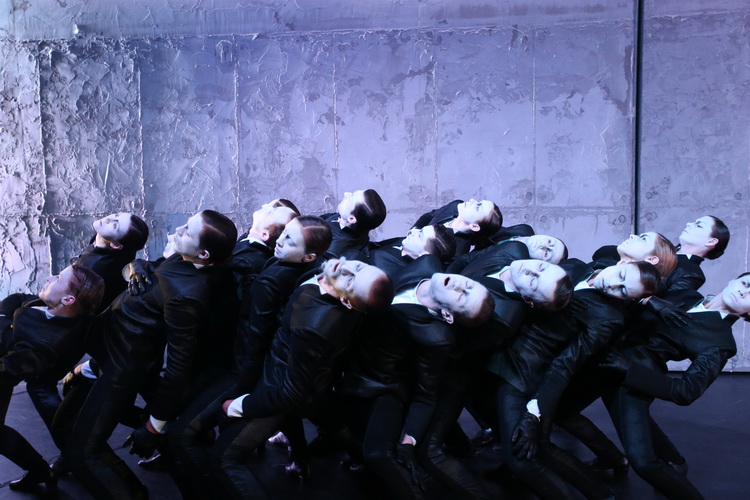 Scenariul se pigmentează cu povestea vizuală a întâlnirii dintre Ea și Rambuku, interpretat de Andrea Gavriliu. Parțial teatru de mișcare și de dans, spectacolul se oferă unor grade nuanțate de receptare. Coregrafia provoacă propriul dialog în actul comunicării estetice, transpus în simboluri de Andrea Gavriliu și cei șaptesprezece dansatori, care multiplică, asemenea unei puneri în abis, imaginea lui Rambuku. Deosebit de expresivi, tinerii artiști povestesc prin mișcările lor hipnotice, uneori într-o perfectă sincronizare, alteori într-un halucinant continuum de trupuri tinere replicate la nesfârșit. Sfâșietoare presimțiri sunt redate, în anumite pasaje, prin zvâcniri electrizante, spasmodice, dezarticulate precum haosul ce pune stăpânire pe sufletul omului. Secvența de dans cu cărțile deschise și închise ritmic accede la un nivel superior de interpretare. Nu mai poate fi vorba despre simple cărți ca obiecte în sine, ci de o resemantizare, de o ilustrare a marii Cărți a vieții și a morții. Poate chiar de o Carte universală a morților, concepută pe tiparul oferit de străvechile modele tibetane și egiptene, în care Ea preia rolul mistagogului, explorând noi forme de comunicare cu El, cel atât de absent, impasibil și tăcut.