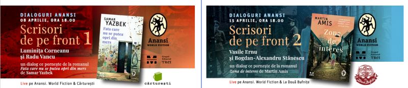 Cel de-al doilea eveniment din această serie, „Scrisori de pe front 2”, plănuit pentru data de 15 aprilie, de la ora 18.00, pe paginile de Facebook #Anansi și #LaDouăBufnițe, îi aduce față în față pe scriitorii Vasile Ernu și Bogdan-Alexandru Stănescu, protagoniștii unor dialoguri despre literatură care au fermecat în trecut sute de cititori. Pretextul întâlnirii îl constituie ediția în limba română a unuia dintre cele mai puternice romane semnate de Martin Amis. Este vorba despre Zona de interes (traducere de de Mihaela Ghiță), o carte năucitoare, tăioasă, asemenea unei oglinzi ce pare a realiza imposibilul: să pună în scenă o poveste autentică de dragoste ce se desfășoară într-un lagăr nazist, un triunghi amoros care-și trăiește micile drame pe fundalul unei „banalități a răului” cutremurătoare.