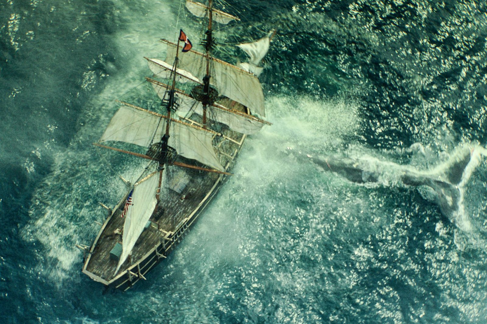 Trebuie să recunosc, însă, că, în pofida unei artificialități tehnice întrevăzute (culorile, de pildă, mi s-au părut, în mare parte, adăugate digital, iar nu preluate din cadre naturale), efectele speciale au dat rezultate, în unele secvențe, și au mai salvat, cât de cât, scăpările transpunerii cinematografice. Plecarea din Nantucket, cu întinderea pânzelor și blocarea strategică a unei vele; trecerea prin furtună, asezonată de disputa dintre autoritatea înnăscută (secundul) și cea pretinsă (căpitanul); atacul balenei (prelungit, antifactual, și după scufundarea vasului, cu vădita intenție de a crea o parabolă a confruntării permanente dintre om și natură); debarcarea din corabia în flăcări, pe jumătate scufundată. Muzica (Roque Baños) a avut și ea aportul ei. Dar cele câteva injecții de adrenalină administrate privitorului pasionat din sala de cinema n-au copleșit senzațiile ambigui din restul filmului. Poate că am făcut și greșeala să citesc cartea lui Philbrick înainte și să am așteptările trezite de epopeea lui Melville (filmul sfârșește, de altfel, frumos, cu celebra frază ”Call me Ishmael…”).
