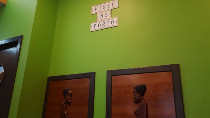 Viseu no Porto. Așa se numește restaurantul în care am mâncat de trei ori, cât am stat la Porto. Situat chiar în centrul orașului, lângă Gara São Bento (sau Sfântul Benedict). Cumva, am deschis și închis, prin popasul în acest loc, sejurul nostru. Fabuloasă atmosfera. Prima dată, pe la prânz, am fost invitați să urcăm, nu mai erau locuri libere, nici pe terasă, nici la parter, unde se afla și barul. Mâncarea era adusă la etaj cu liftul. Chelnerul urca și cobora fără încetare. Se strecura printre mesele de două până la patru persoane, cu scaune din lemn, ca cele de la mobilele vechi, de sufragerie, de prin anii ’70. Purta niște adidași largi, ca niște șalupe. Iulia a băut un fresh de portocale cu 1,80 euro, un ditamai paharul, vreo 500 de ml. N-am băut nicăieri în Portugalia un astfel de suc. Fără zahăr, fără gheață, fără adaos de apă de la robinet. Doar suc natural. Și portocalele lor, se știe, sunt dulci ca mierea. Am comandat toți trei o supă tradițională din sânge de porc, numită și sopa de pedra (supă de piatră). Nu Caldo Verde, aceea e supa de legume, cu varză și cartofi. Au aterizat pe masă trei boluri imense, cu ceva dens, în genul mâncării de fasole sau de linte de pe la noi. Gustul aducea, cumva, a sângerete, textura era a drobului de miel, se distingea ficatul, dar și alte organe, ingredientele, foarte puternice, piperul și boiaua iute. Ar fi fost suficient să sature trei guri flămânde, trezite de pe la trei și jumătate dimineața, ca să prindă avionul de șase spre München.