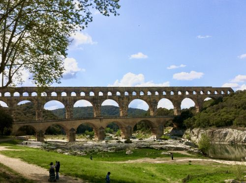 Construcția face parte din apeductul roman care ducea apa de la Fontes Urae (Fontaine d’Eure, astăzi) la Nemausus (Nîmes, în zilele noastre). Ca să ajungeți acolo puneți pe GPS Vers Pont du Gard. Am fost acolo de cîteva ori și, de fiecare dată, uimirea și admirația au funcționat la cote înalte. În paranteză spun ceva ce am învățat la lecțiile de fizică, la vasele comunicante. Dacă romanii ar fi cunoscut principiul vaselor comunicante (nu, nu l-au cunoscut), viața lor ar fi fost mult mai simplă și apeductele nu ar mai fi trebuit să fie, mereu și mereu, coborîtoare dinspre izvor spre cetățile pe care le alimentau.
