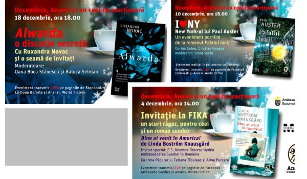 Primul eveniment are loc chiar săptămâna aceasta: vineri, 4 decembrie, de la ora 14.00, iubitorii de povești sunt invitați la FIKA. Având subtitlul „Un scurt răgaz, pentru ceai și un roman suedez”, evenimentul pune în practică unul dintre cele mai cunoscute obiceiuri suedeze – fika, o pauză obligatorie pe care oamenii și-o acordă în timpul zilei pentru a savura o ceașcă de cafea sau de ceai, alături de ceva copt și, de regulă, dulce. Un răgaz binevenit pe care Editura Pandora M îl organizează cu ajutorul Ambasadei Suediei în România, în timpul căruia invitatele vor vorbi despre unul dintre cele mai îndrăgite romane cu care a debutat colecția ANANSI: Bine ai venit în America! de Linda Boström Knausgård (traducere de Roxana Dreve). La fika de vineri, 4 decembrie, iau parte îndrăgita jurnalistă Irina Păcurariu, alături de scriitoarele Tatiana Țîbuleac și Alina Purcaru. Invitata specială a evenimentului este E.S. Doamna Therese Hydén, Ambasadoarea Suediei în România. Evenimentul va fi transmis LIVE pe paginile de Facebook ale colecției ANANSI și ale Ambasadei Suediei în România.